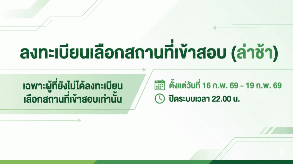 ! โปรดอ่านรายละเอียด ก่อนกดเลือกสถานที่เข้าสอบ !