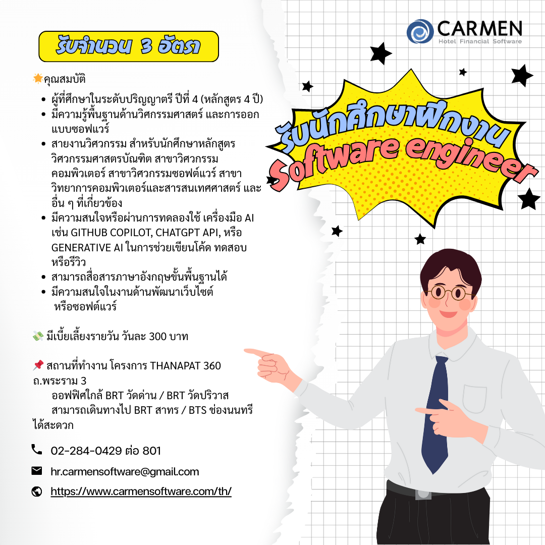 ประชาสัมพันธ์การรับนิสิตฝึกงาน / สหกิจศึกษา ของ บริษัท คาร์เมน ซอฟแวร์ จำกัด