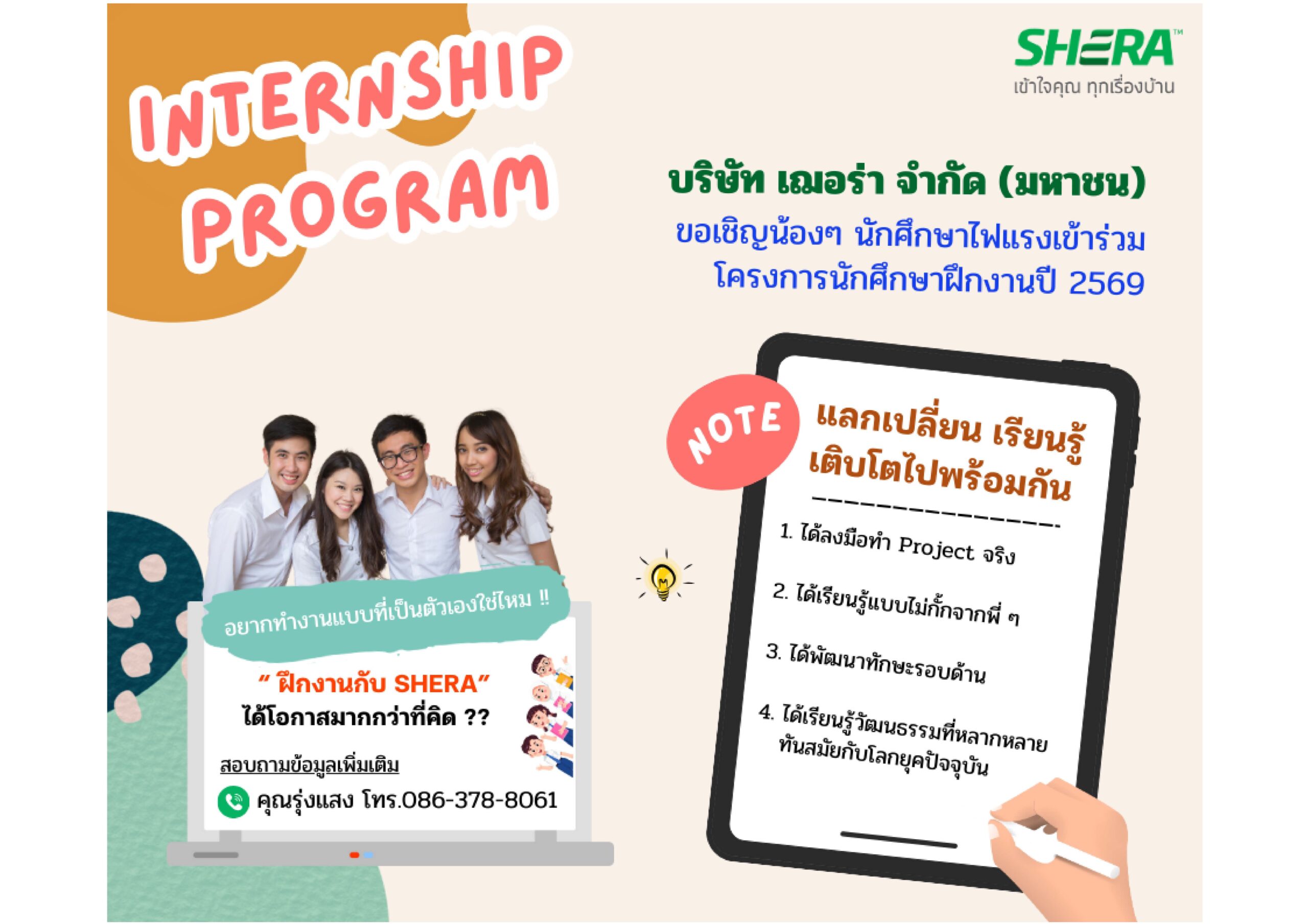 ประชาสัมพันธ์การรับนิสิตฝึกงาน/สหกิจศึกษา ของ บริษัท เฌอร่า จำกัด (มหาชน)