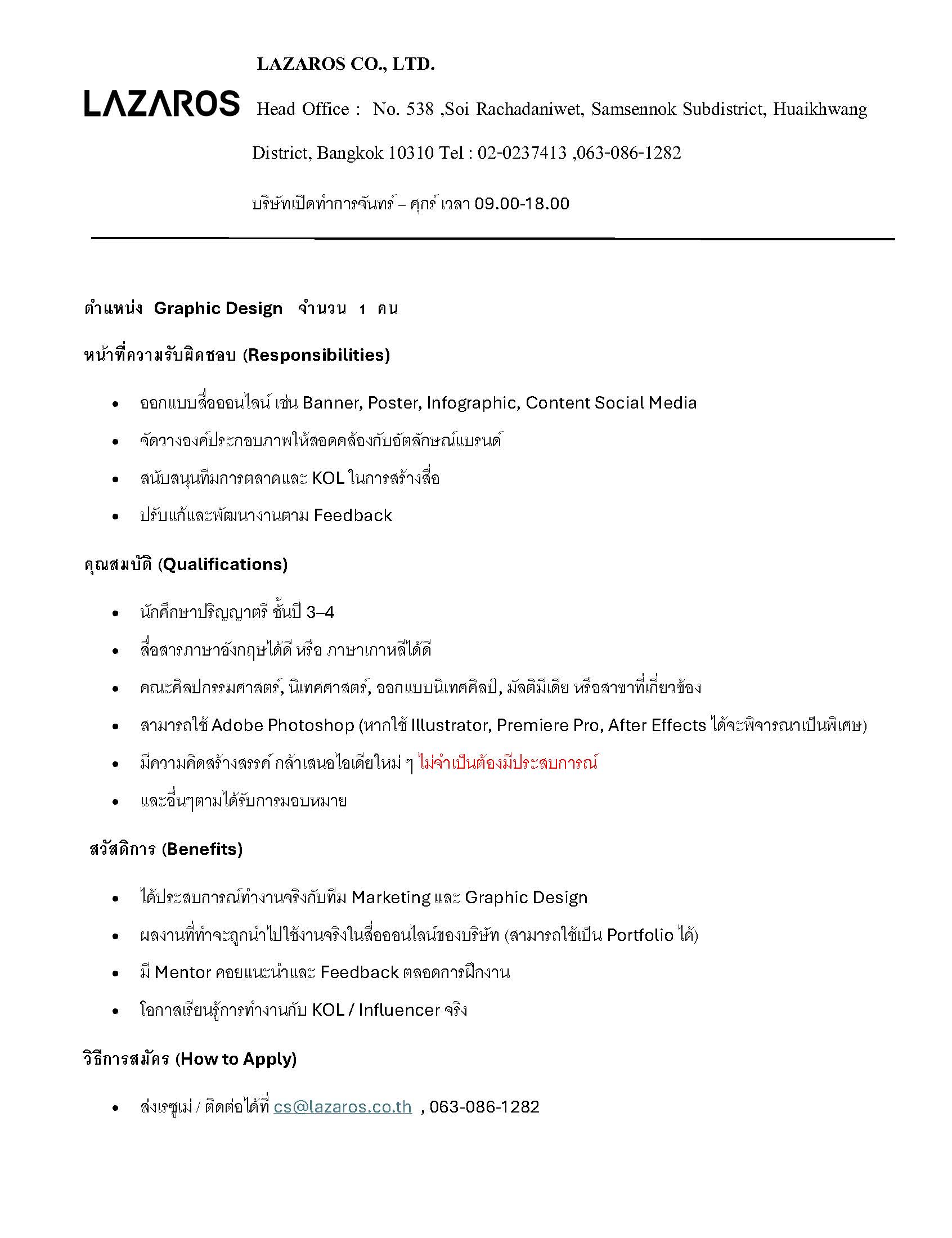 *ตำแหน่งที่เปิดรับ: Graphic Design /KOL Marketing
