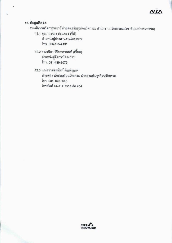 หรือสอบถามเพิ่มเติมได้ที่ Email : steam4innovator@nia.or.th