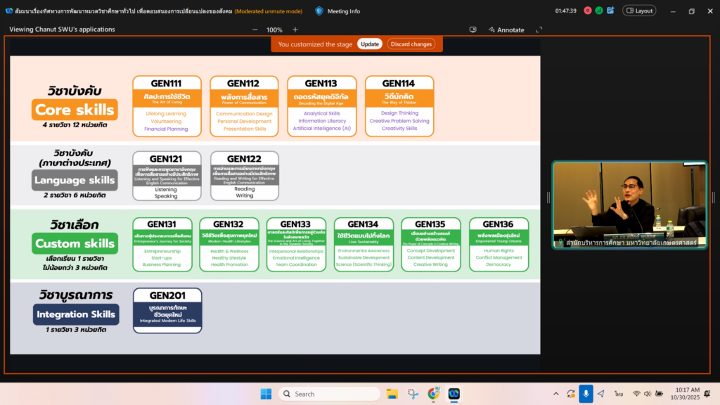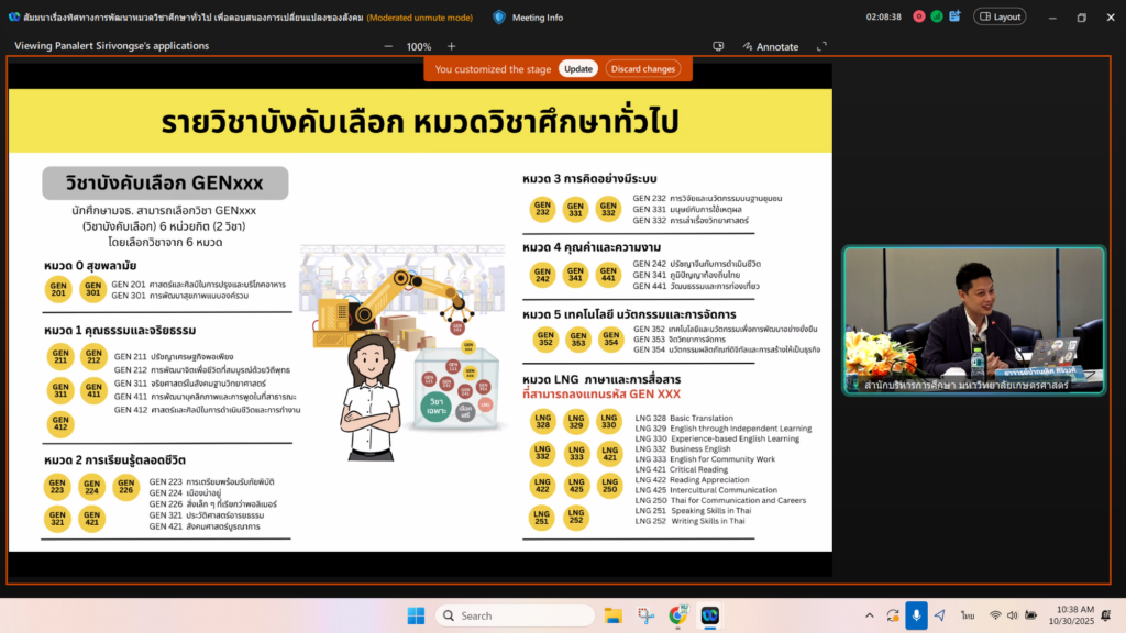 เรื่อง ทิศทางการพัฒนาหมวดวิชาศึกษาทั่วไป เพื่อตอบสนองการเปลี่ยนแปลงของสังคม