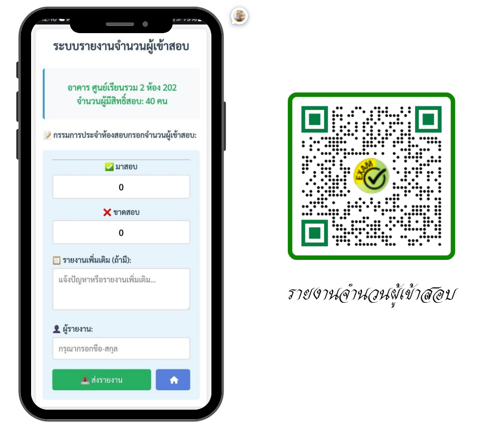 สำหรับกรรมการคุมสอบรายงานจำนวนผู้เข้าสอบ ผู้ขาดสอบ และปัญหาระหว่างการคุมสอบผ่านมือถือ