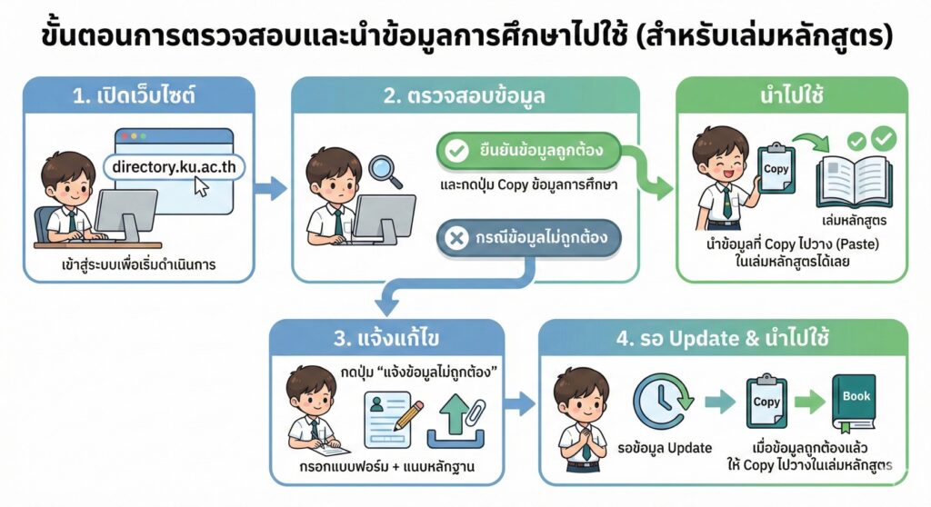กรณีข้อมูลการศึกษาไม่ถูกต้อง ให้ดำเนินการดังนี้